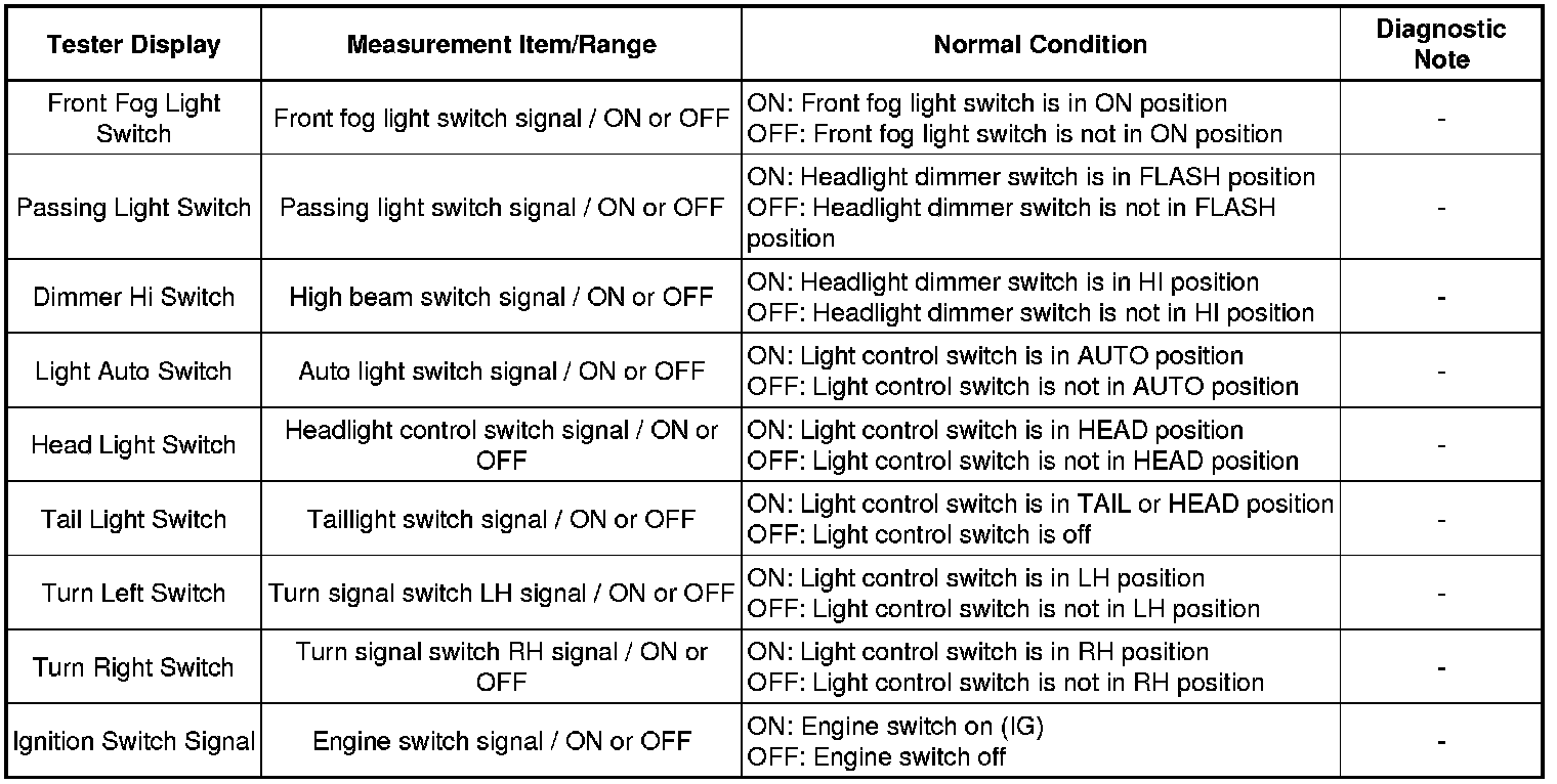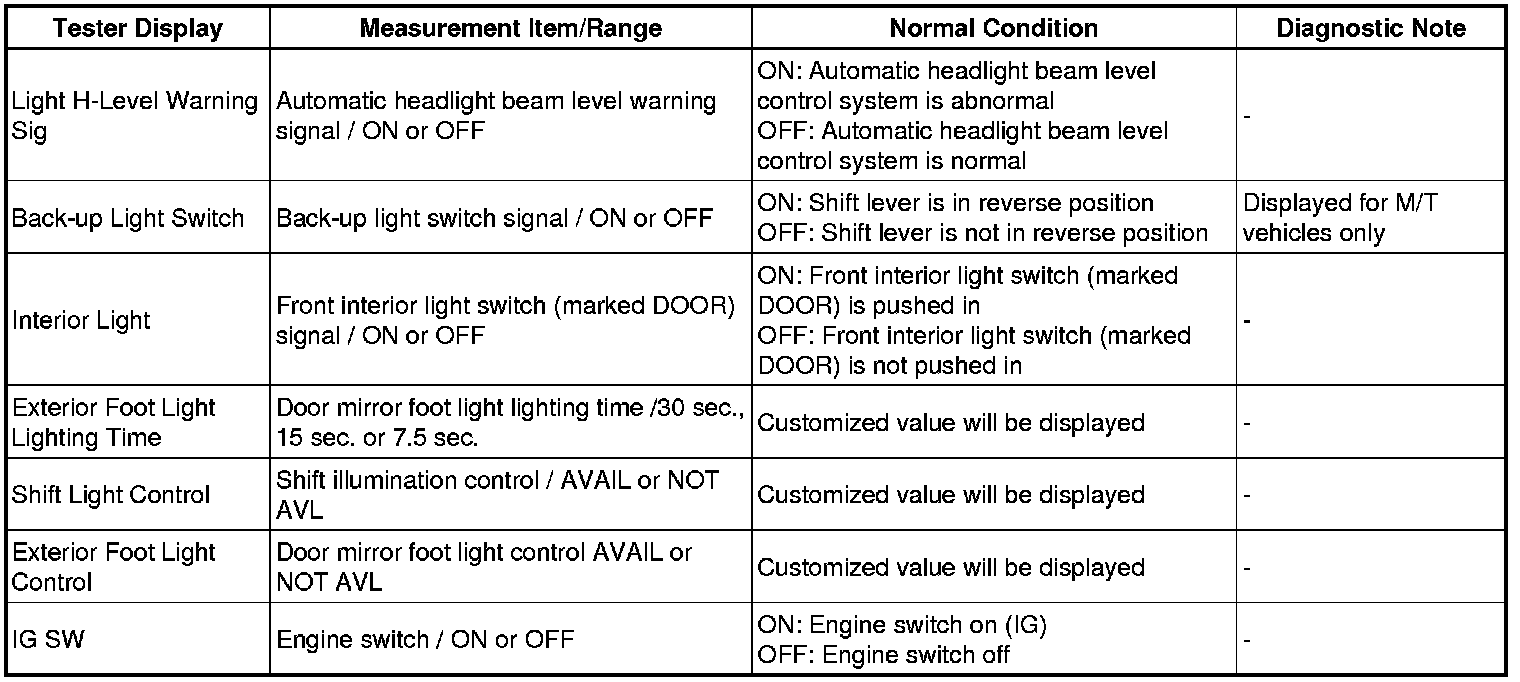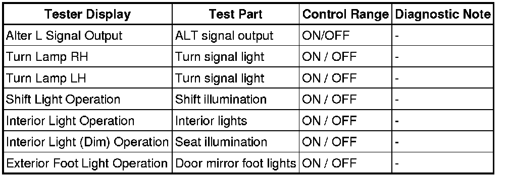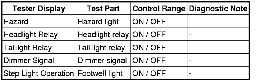 LIGHTING: LIGHTING SYSTEM: DATA LIST / ACTIVE TEST