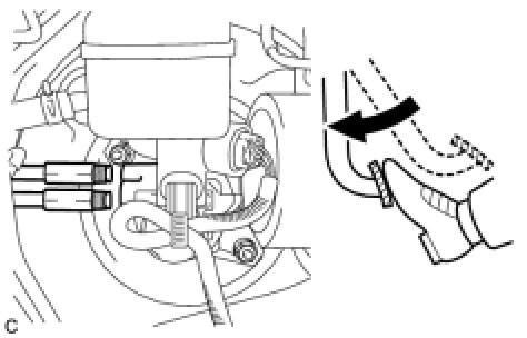 * If the master cylinder is reinstalled or if the reservoir becomes empty, bleed the air from the master cylinder.