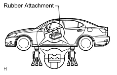 (d) Place the vehicle horizontally by adjusting the height of the cradle, and match the groove of the cradle and the safety stand support location accurately.