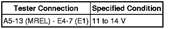 When the engine switch is turned on (IG), the battery voltage is applied to terminal IGSW of the ECM. The ECM MREL output signal causes a current to flow to the coil, closing the contacts of the EFI MAIN relay and supplying power to terminal +B and +B1 of the ECM.