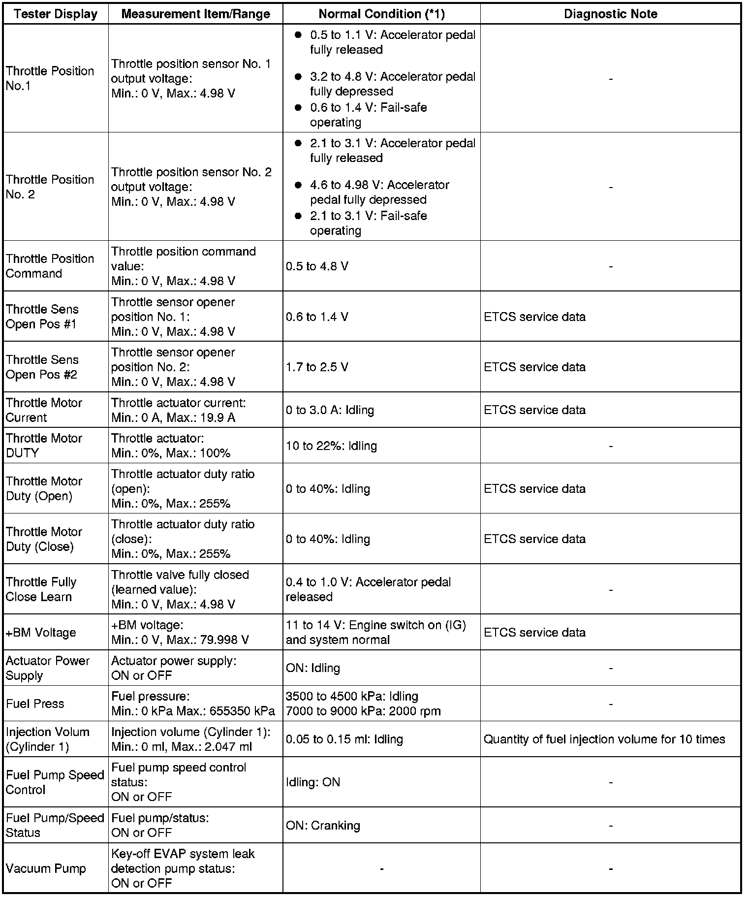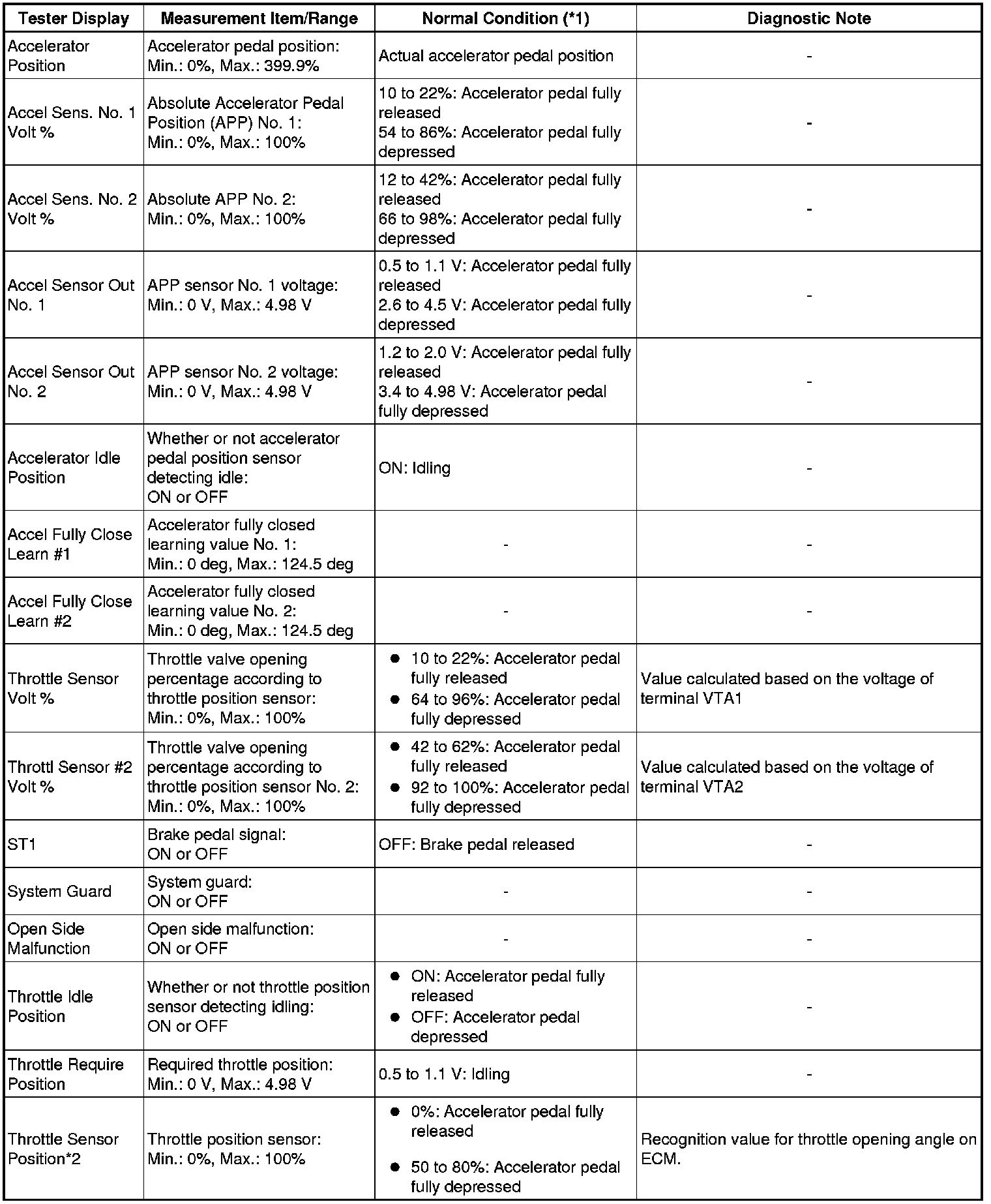 * *2: Excluding throttle valve opening percentage due to Idle Speed Control (ISC).