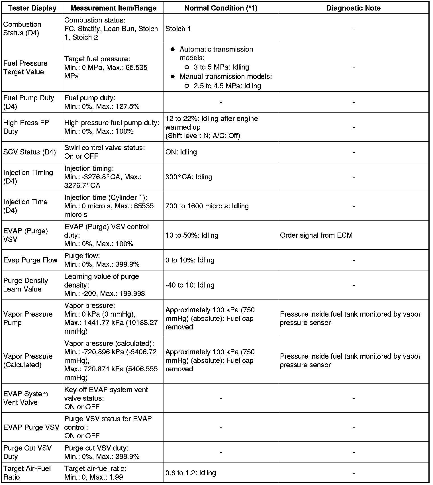 * *1: If no idling conditions are specified, the transmission gear selector lever should be in the N or P position, and the A/C switch and all accessory switches should be OFF.