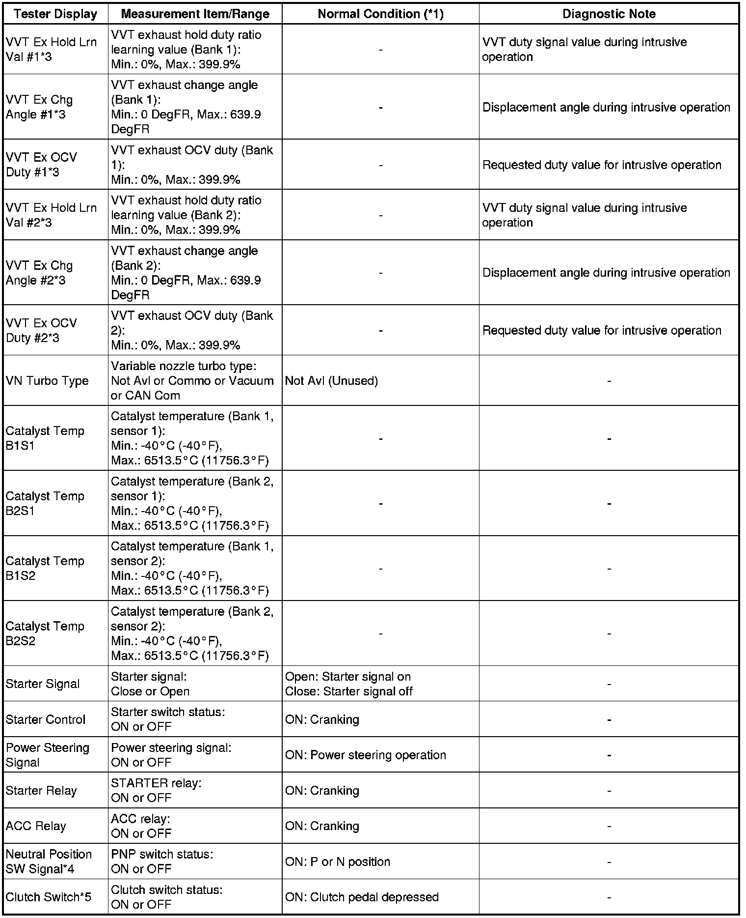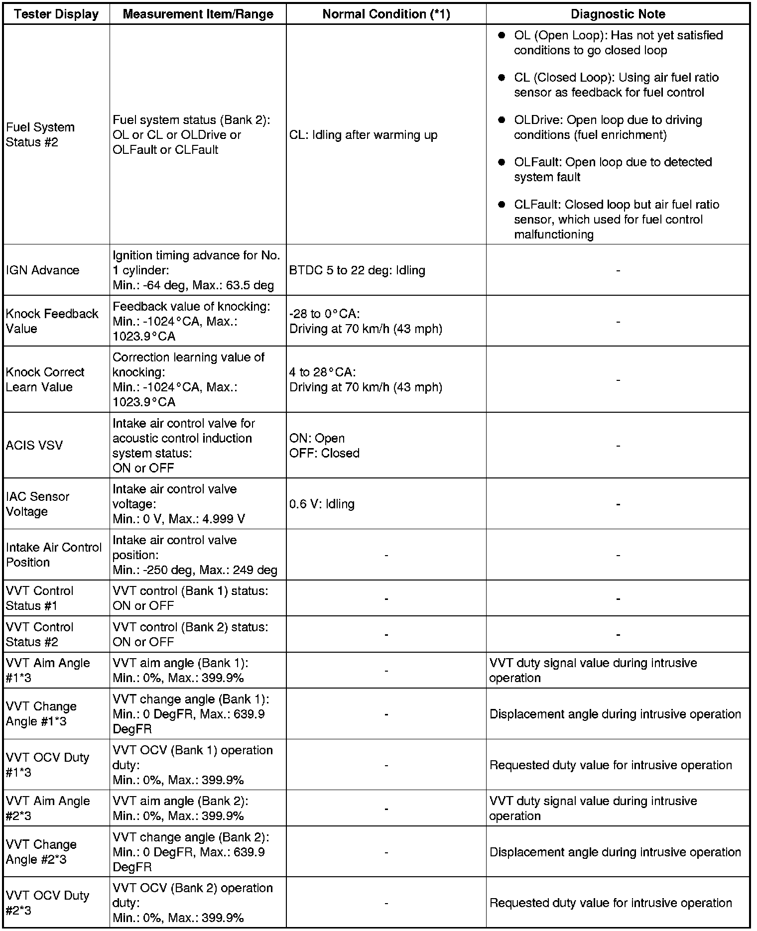 * *3: Data List values are only displayed when performing the following Active Test: Control the VVT Linear (Bank 1, 2), Control the VVT System (Bank 1, 2), and Control the VVT Exhaust Linear (Bank 1, 2). For other Active Tests, the Data List value will be 0.