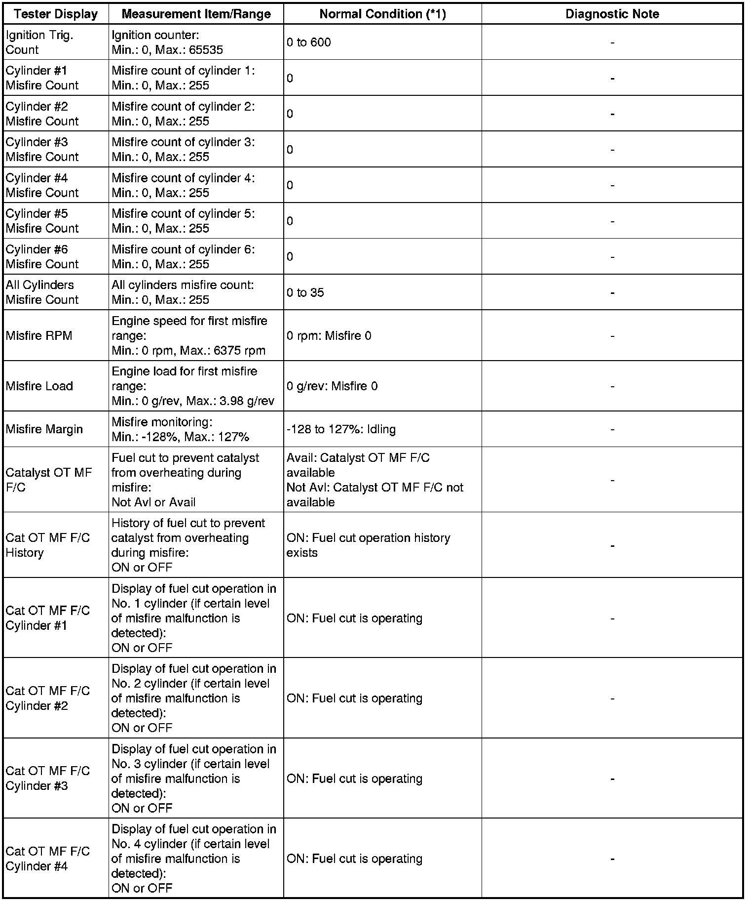 * If the display of the Data List's Catalyst OT MF F/C item is Not Avl, perform this Active Test with the vehicle stopped and the engine idling.