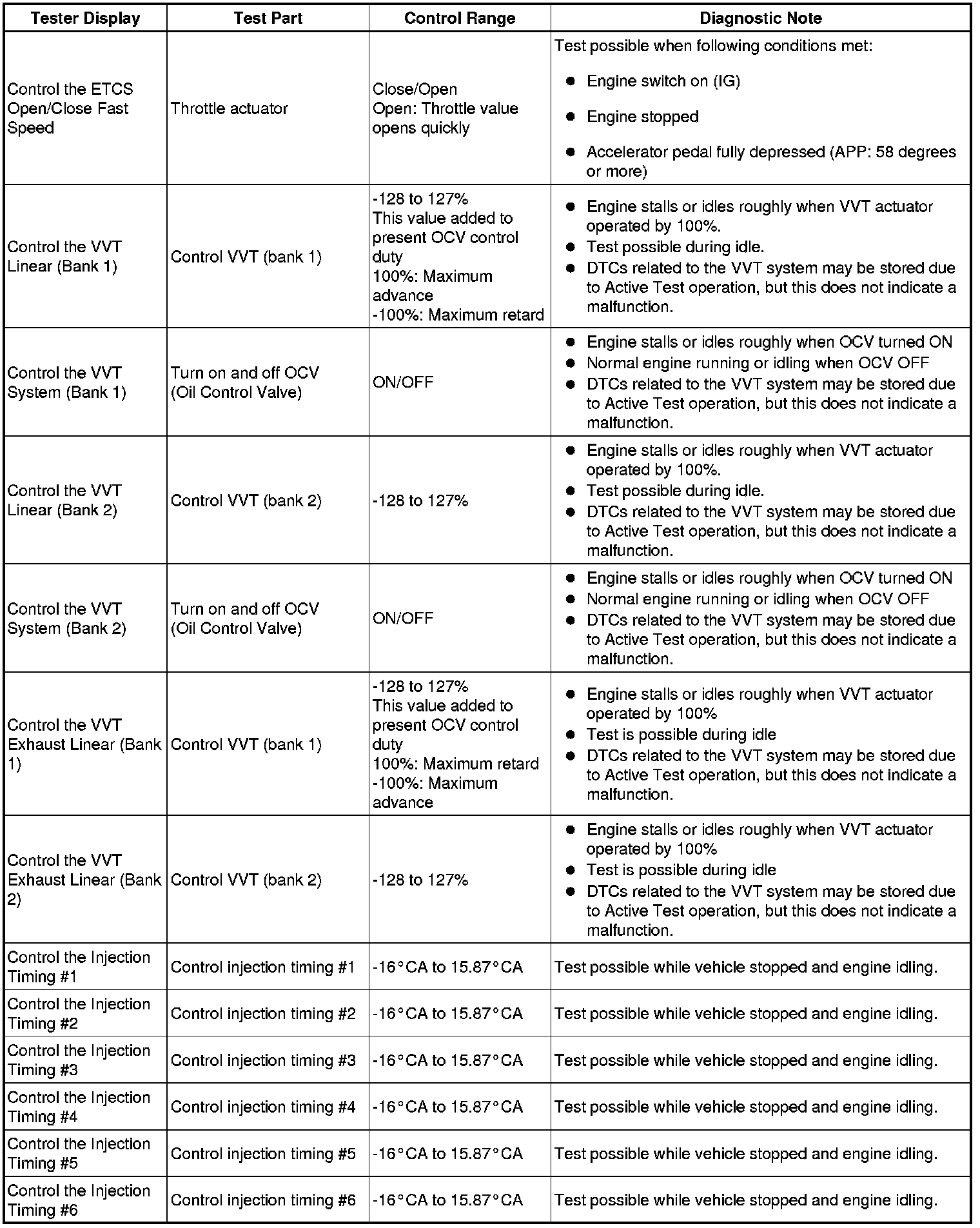 (e) Perform an Active Test by referring to the table below.