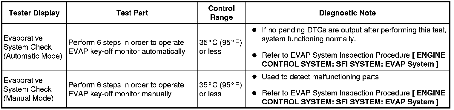 (e) Perform the System Check by referring to the table below.