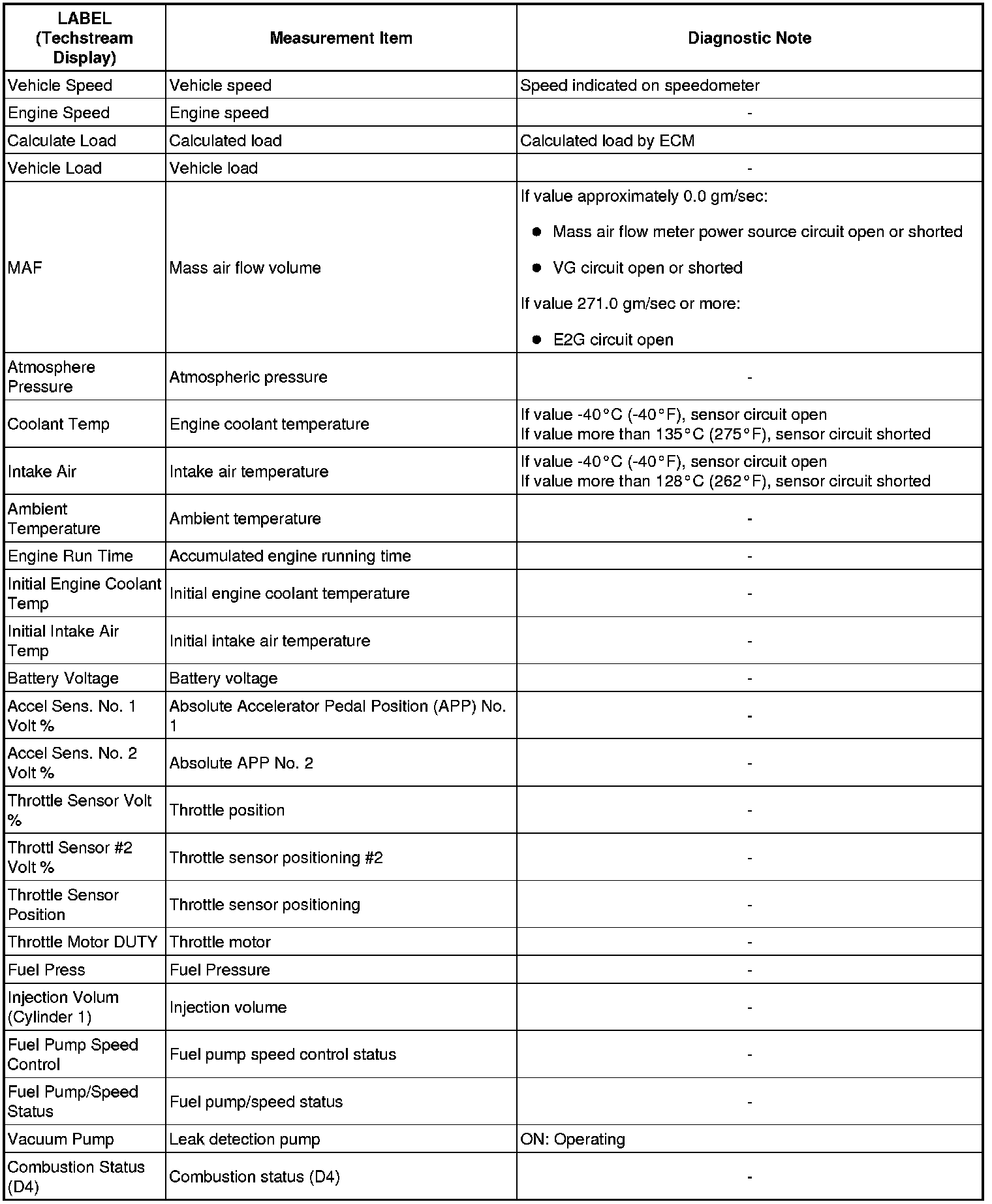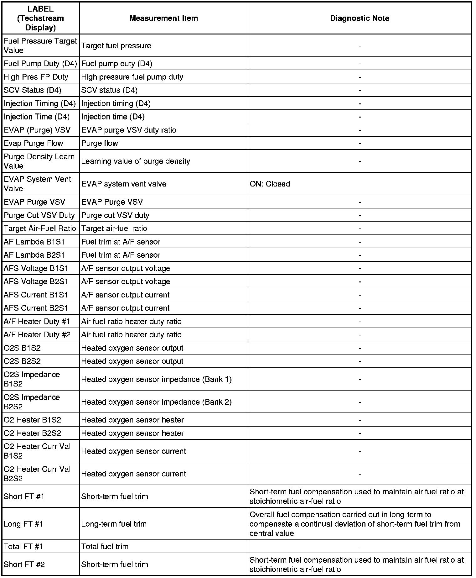 4GR-FSE ENGINE CONTROL SYSTEM: SFI SYSTEM: FREEZE FRAME DATA
