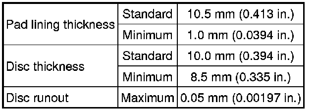 SERVICE SPECIFICATIONS: BRAKE: SERVICE DATA