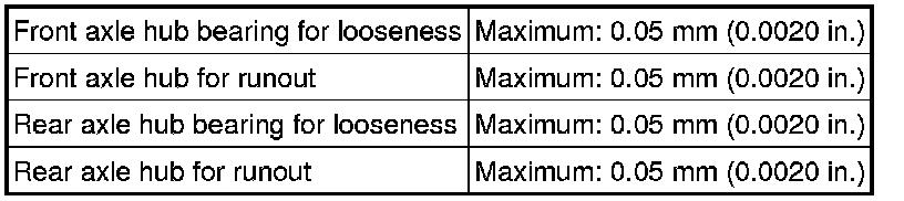 SERVICE SPECIFICATIONS: AXLE: SERVICE DATA