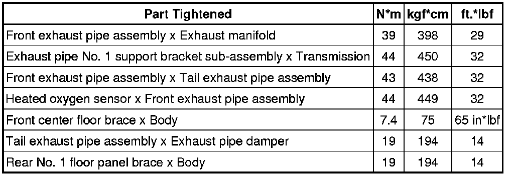 SERVICE SPECIFICATIONS: 4GR-FSE EXHAUST: TORQUE SPECIFICATIONS