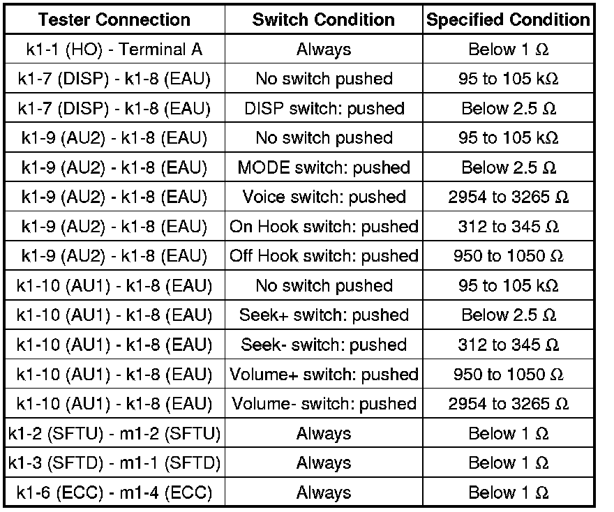 AUDIO / VISUAL: STEERING PAD SWITCH: INSPECTION