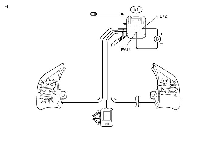 (1) Connect a positive (+) lead to terminal IL+2 and a negative (-) lead to terminal EAU of the steering pad switch assembly connector.