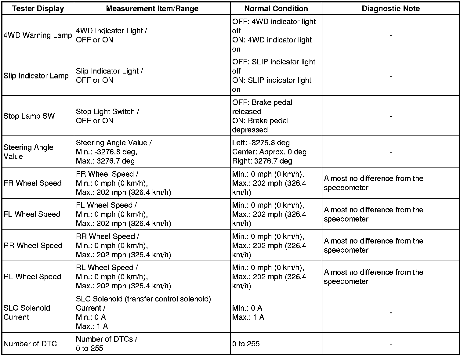 UF1AE TRANSFER: FOUR WHEEL DRIVE CONTROL SYSTEM: DATA LIST / ACTIVE TEST