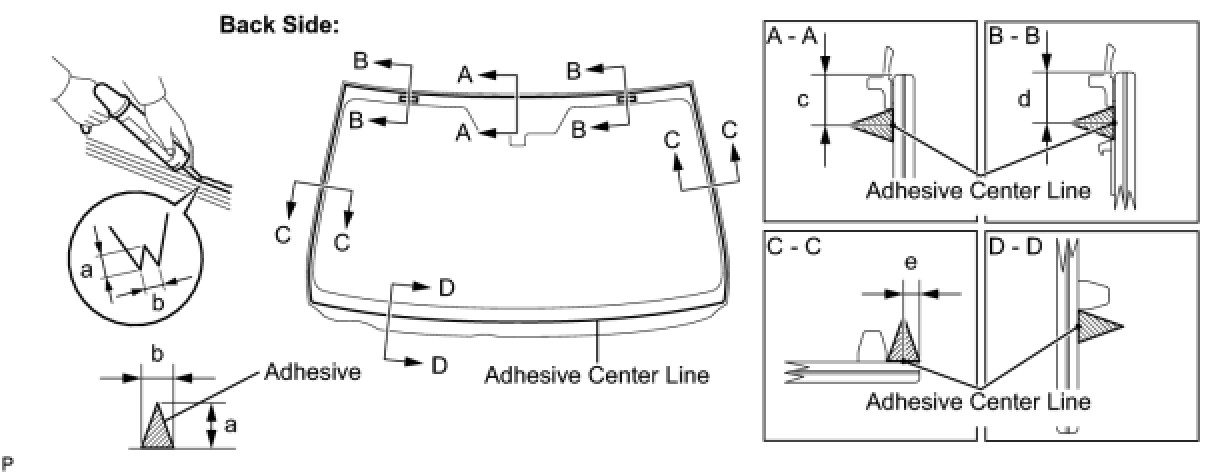 (e) Apply adhesive (Adhesive: Toyota Genuine Windshield Glass Adhesive or equivalent).