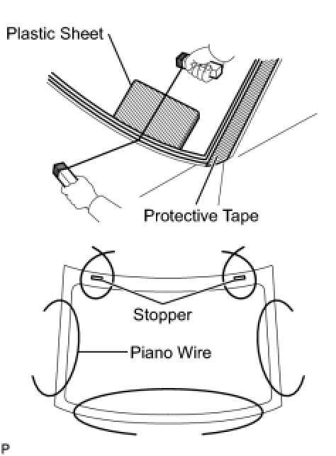 (a) Using a scraper, remove the No. 2 windshield glass stoppers.