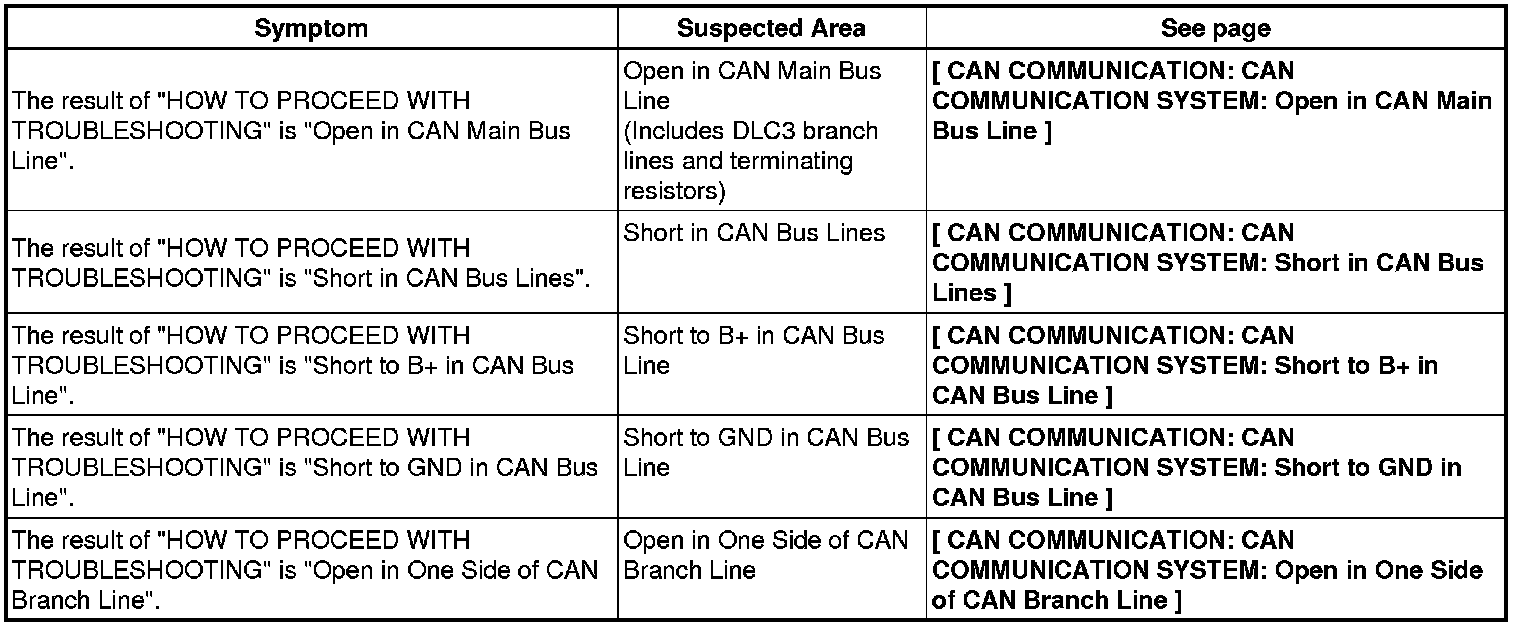 CAN COMMUNICATION: CAN COMMUNICATION SYSTEM: PROBLEM SYMPTOMS TABLE