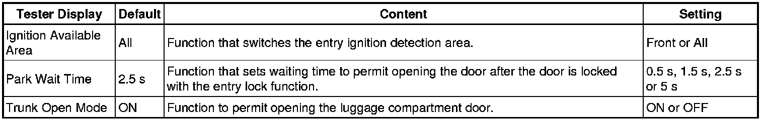 THEFT DETERRENT / KEYLESS ENTRY: SMART ACCESS SYSTEM WITH PUSH-BUTTON START (for Entry Function): CUSTOMIZE PARAMETERS