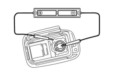 (1) Remove the battery Replacement from the card key that does not operate. Attach a lead wire to the negative (-) and positive (+) side of the battery with tape or equivalent.