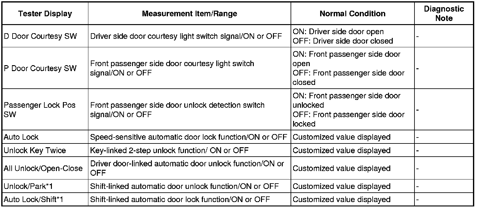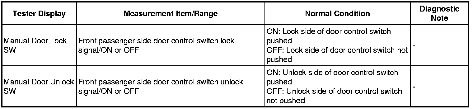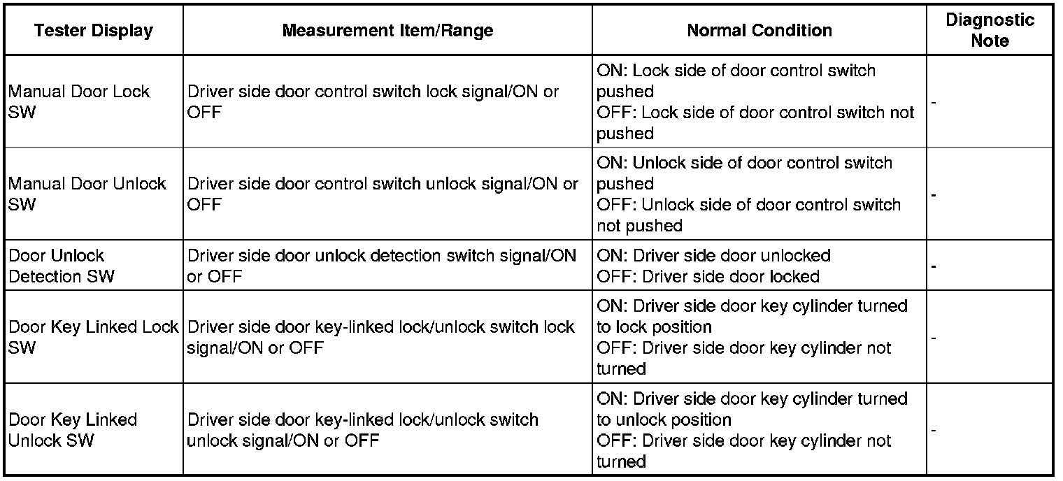 DOOR LOCK: POWER DOOR LOCK CONTROL SYSTEM: DATA LIST / ACTIVE TEST