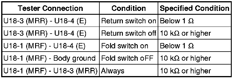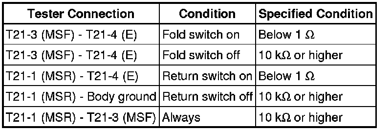 6. CHECK HARNESS AND CONNECTOR (POSITION CONTROL ECU AND SWITCH - FOLD & RETURN SWITCH)
