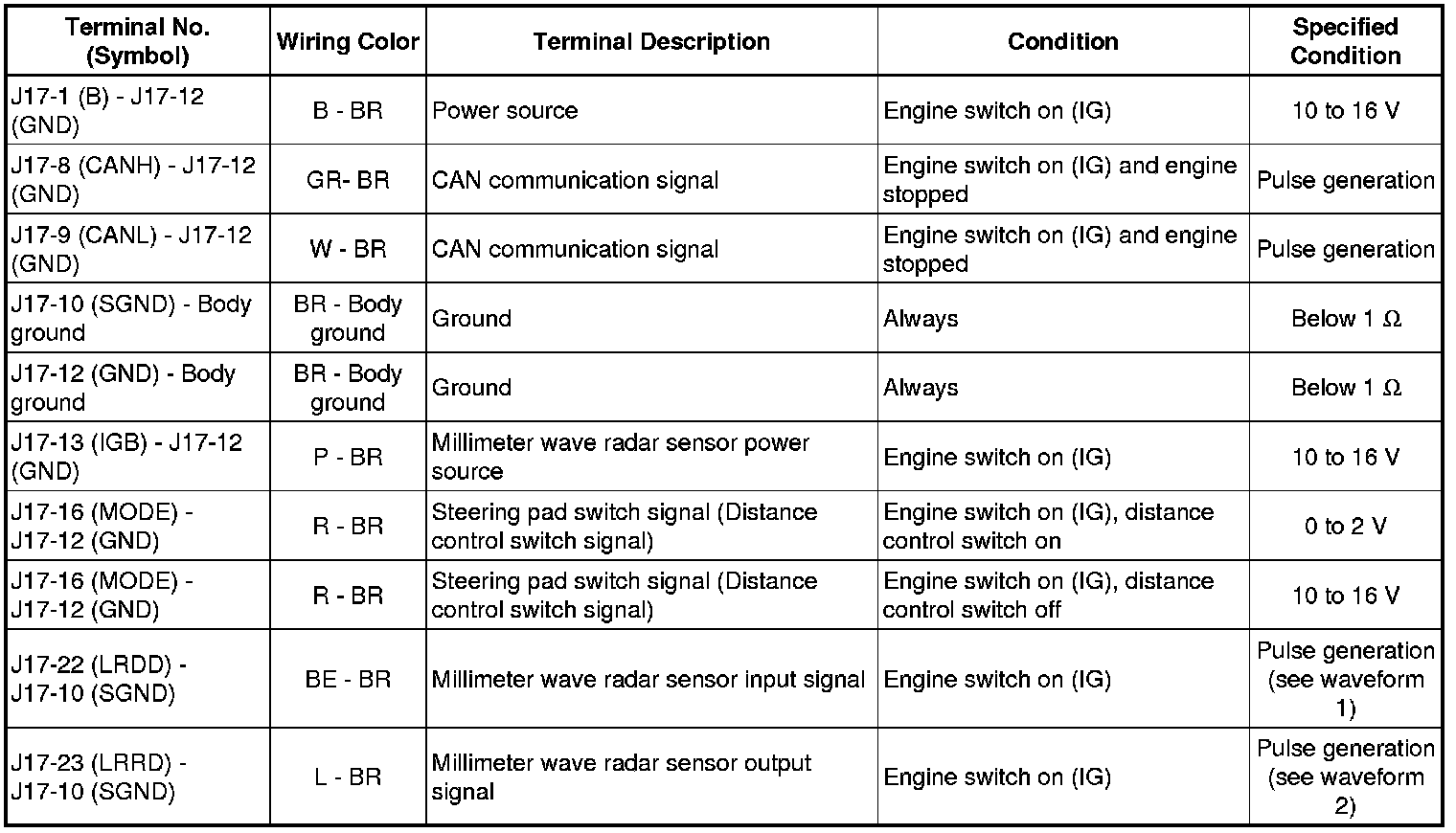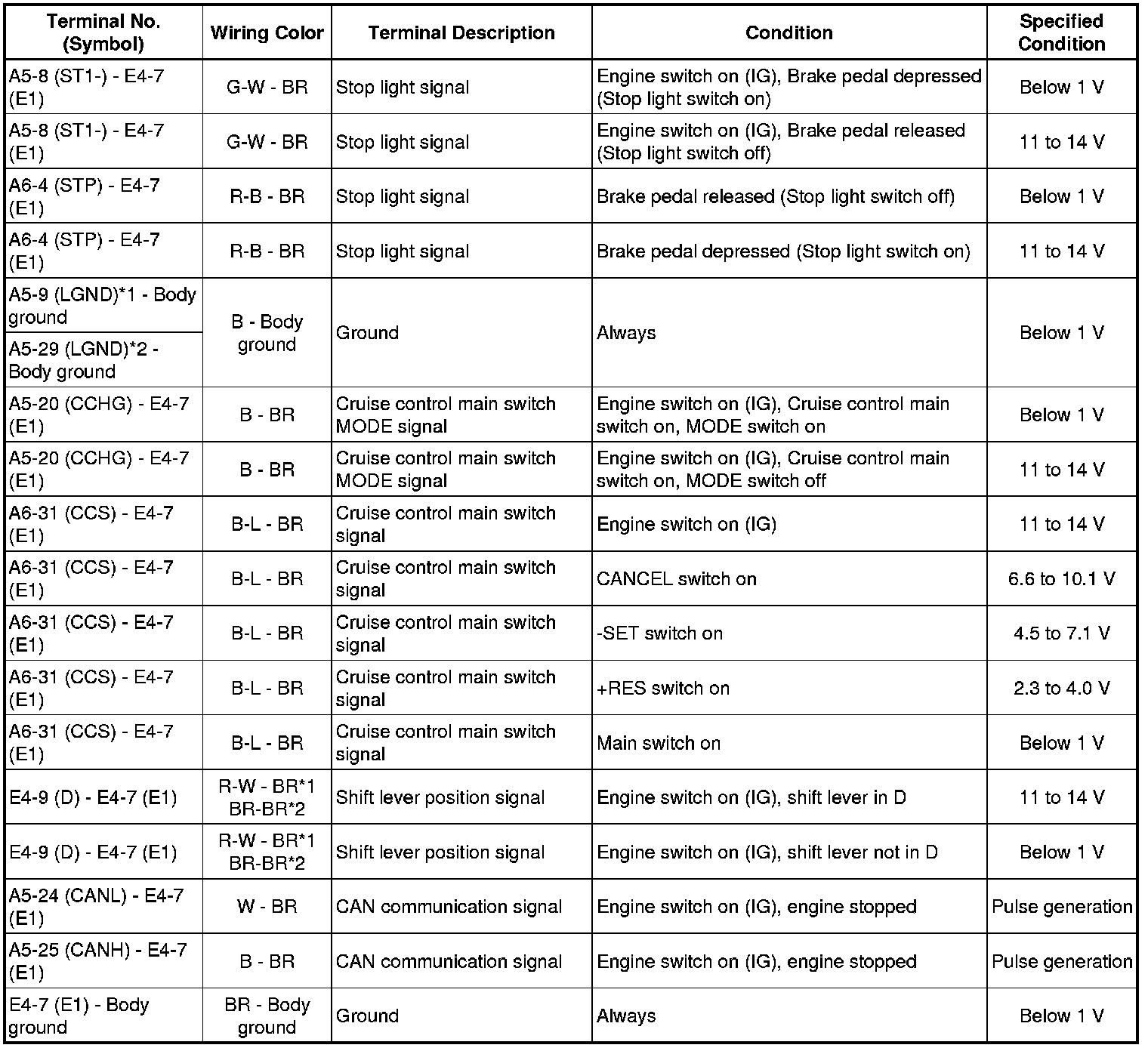 CRUISE CONTROL: DYNAMIC RADAR CRUISE CONTROL SYSTEM: TERMINALS OF ECU