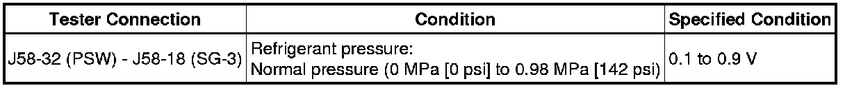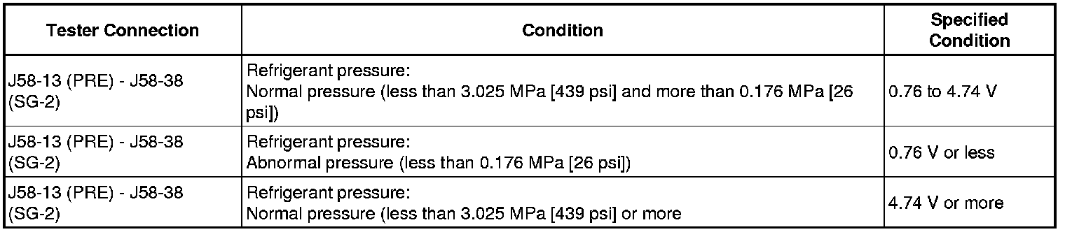 If the measured voltage is not within the normal range, there may be a malfunction in the A/C amplifier, A/C pressure sensor, or wire harness. It is also possible that the amount of refrigerant may not be appropriate.