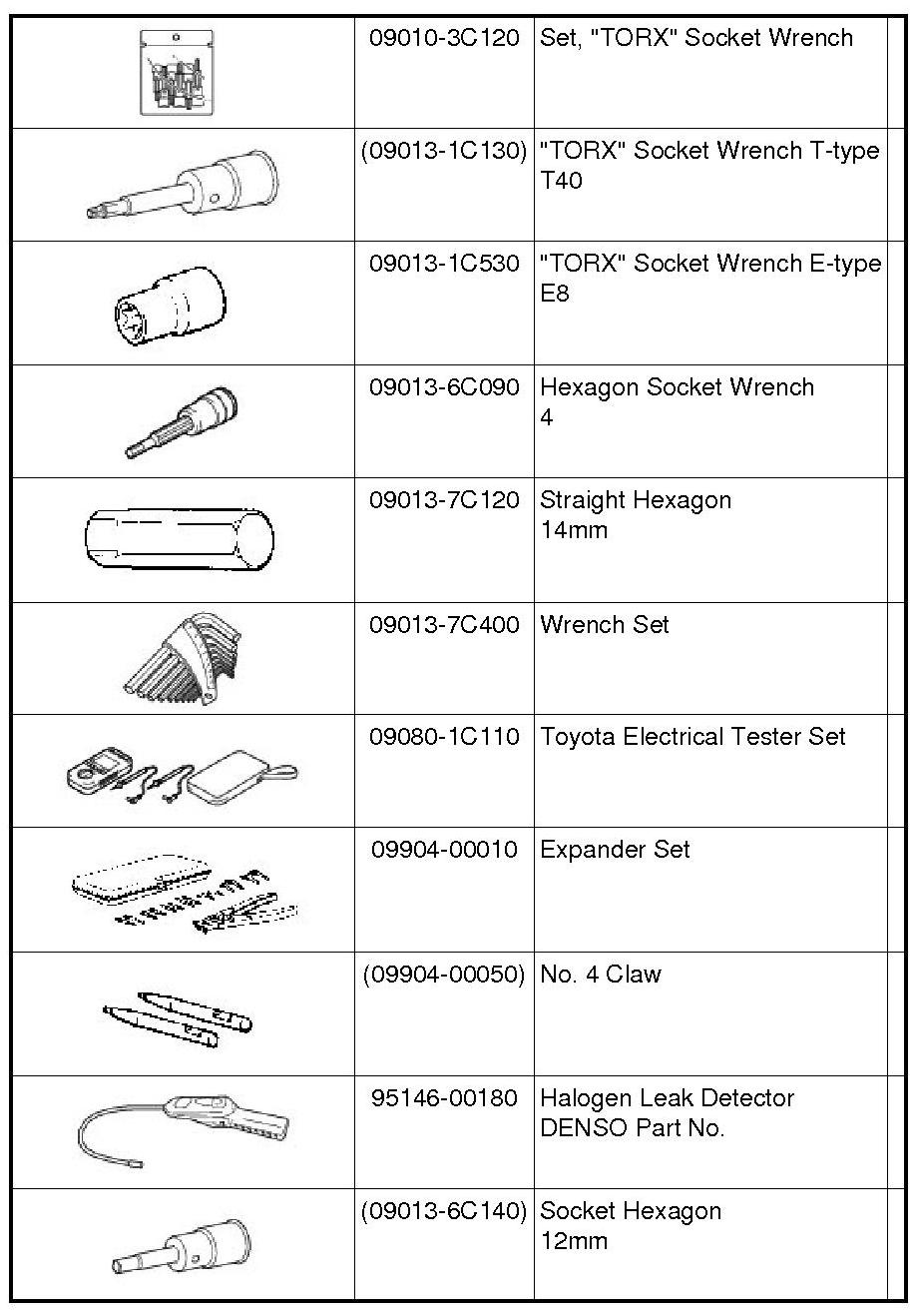 PREPARATION: HEATING / AIR CONDITIONING: RECOMMENDED TOOLS