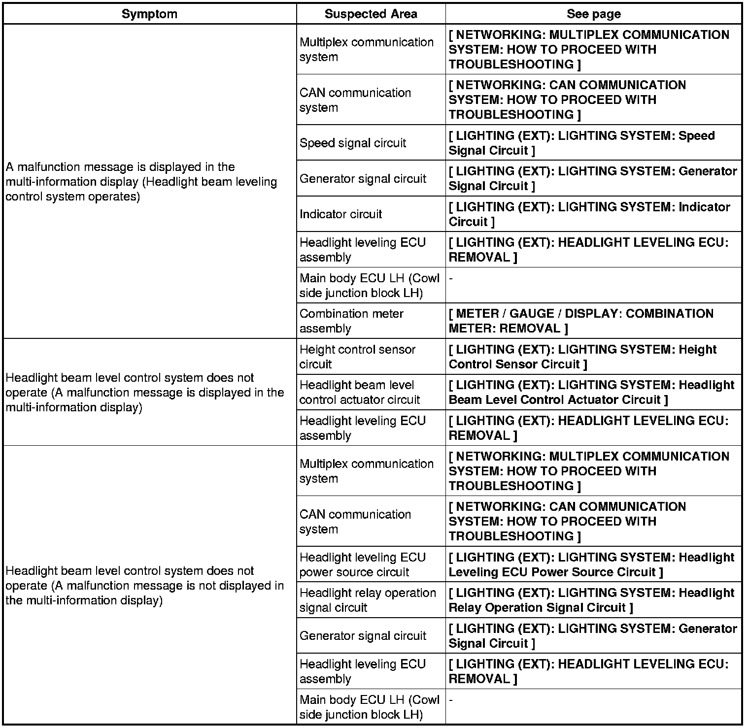 LIGHTING (EXT): LIGHTING SYSTEM: PROBLEM SYMPTOMS TABLE