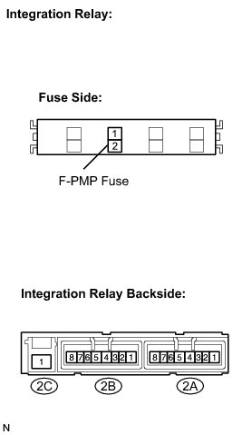 * The internal circuit of the integration relay is as shown in the illustration. Inspect the integration relay using the following procedure.