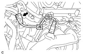 (a) Using SST, install the air fuel ratio sensor connector (for Bank 1 Sensor 1) to the exhaust manifold RH.
