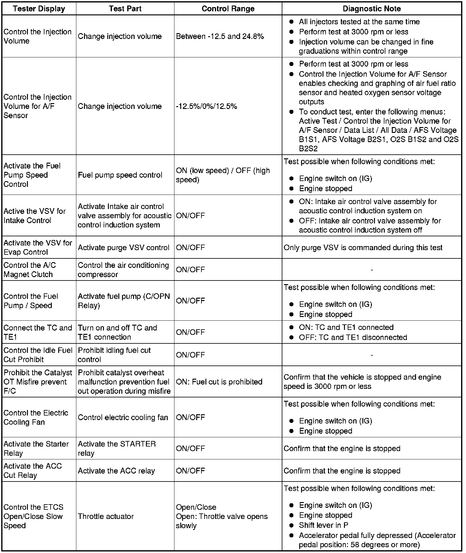 Using the Techstream to perform Active Tests allows relays, VSVs, actuators and other items to be operated without removing any parts. This non-intrusive functional inspection can be very useful because intermittent operation may be discovered before parts or wiring is disturbed. Performing Active Tests early in troubleshooting is one way to save diagnostic time. Data List information can be displayed while performing Active Tests.