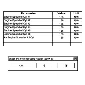 After performing the above procedure, Check the Cylinder Compression will start. Fuel injection for all cylinders is prohibited and each cylinder engine speed measurement enters standby mode.