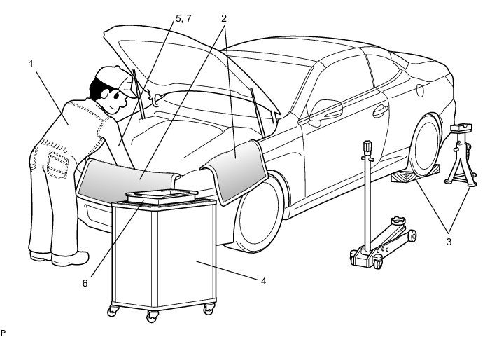 (b) JACKING UP AND SUPPORTING VEHICLE