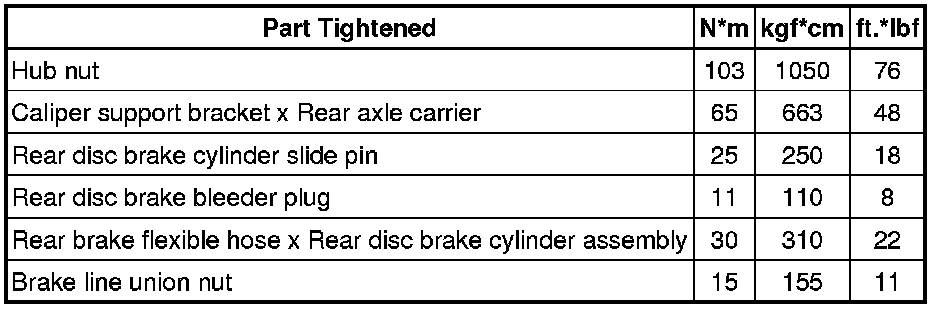 SPECIFICATIONS: BRAKE (REAR): TORQUE SPECIFICATIONS