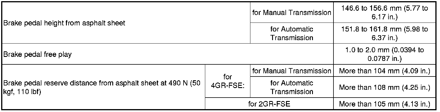 SPECIFICATIONS: BRAKE SYSTEM (OTHER): SERVICE DATA