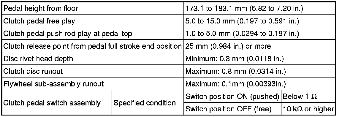 SPECIFICATIONS: CLUTCH: SERVICE DATA