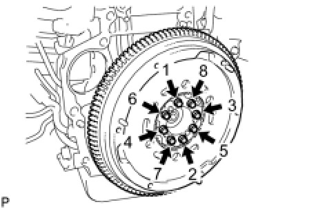 In several steps, install and tighten 8 new bolts uniformly in the sequence shown in the illustration.
