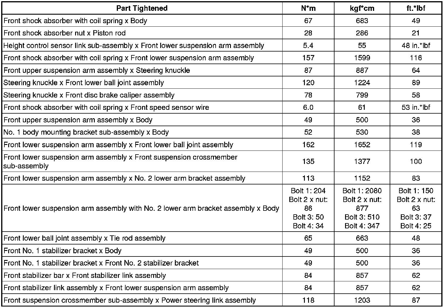 Torque Specifications