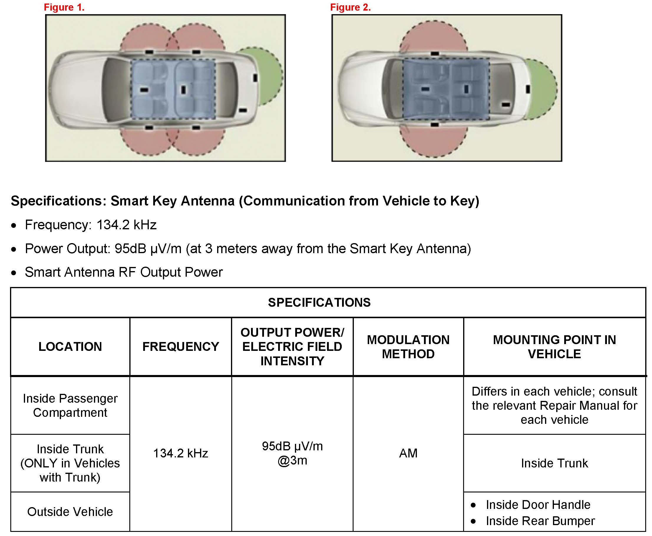 Some customers may inquire about the frequency and power output of the Smart Key/Smart Entry Systems used on various models. The Smart Key/Smart Entry systems conform to all applicable FCC rules and Industry Canada Radio Standards Specifications (RSS). This bulletin details the applicable specifications for these systems.