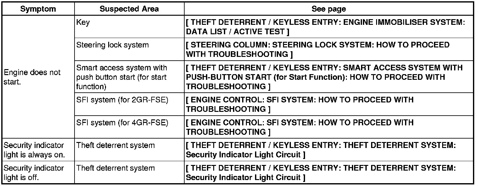THEFT DETERRENT / KEYLESS ENTRY: ENGINE IMMOBILISER SYSTEM: PROBLEM SYMPTOMS TABLE