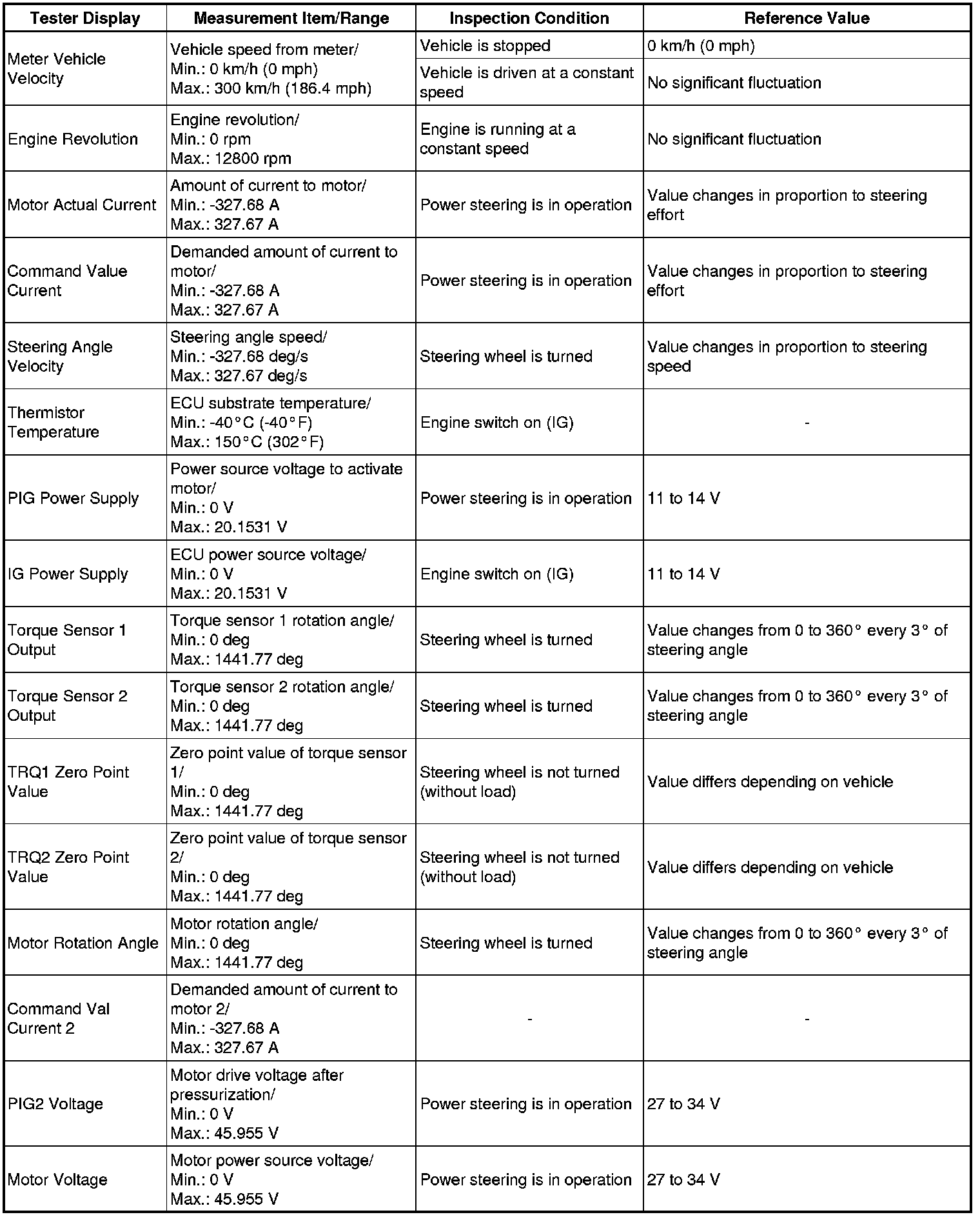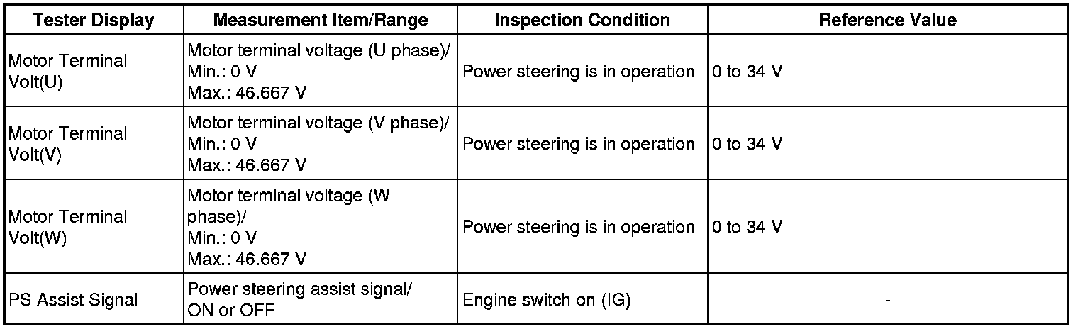 POWER ASSIST SYSTEMS: POWER STEERING SYSTEM: FREEZE FRAME DATA