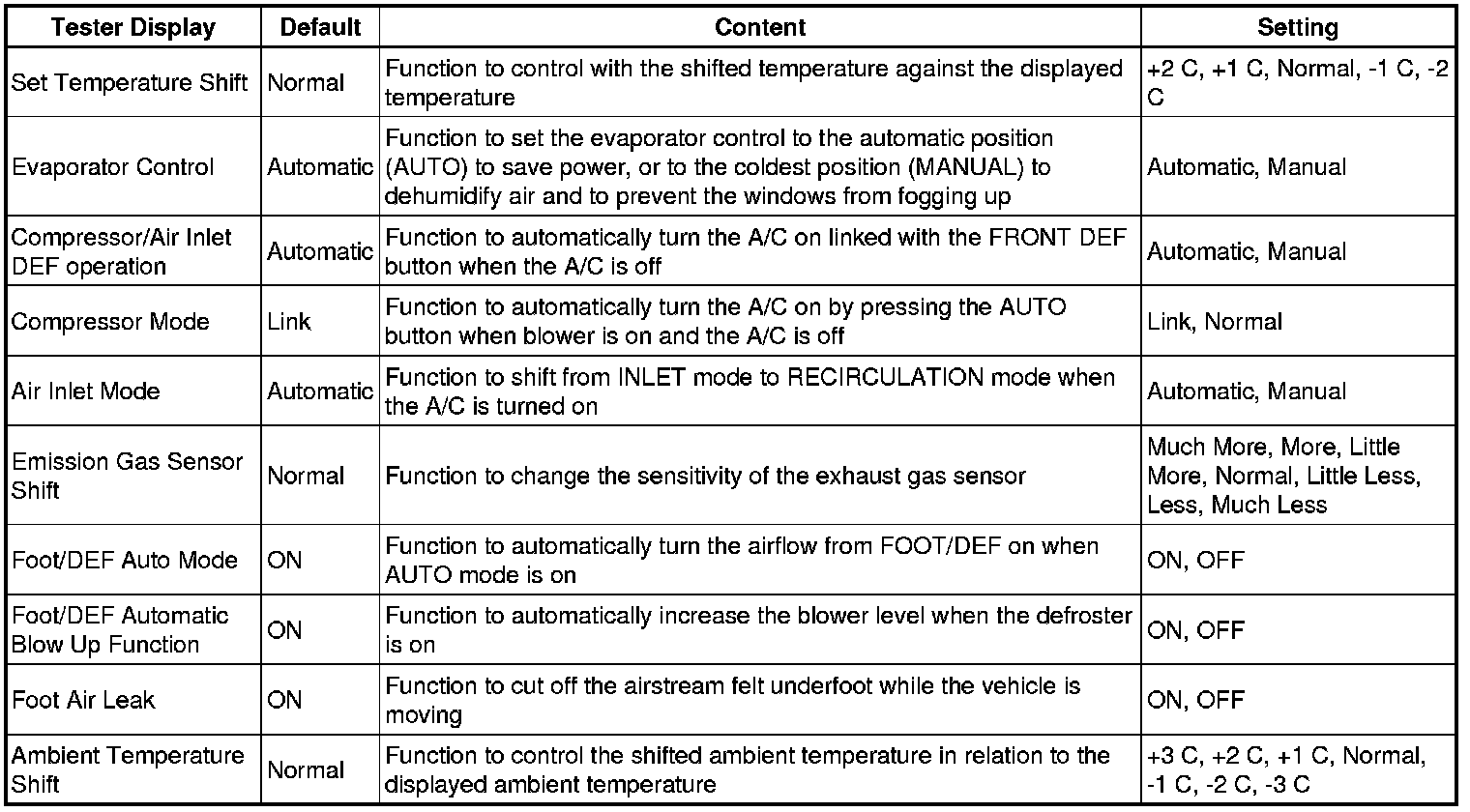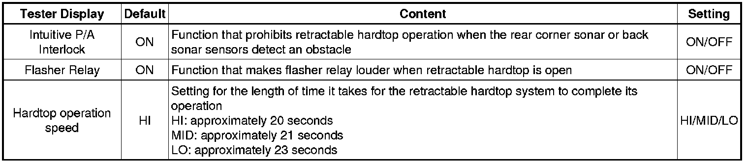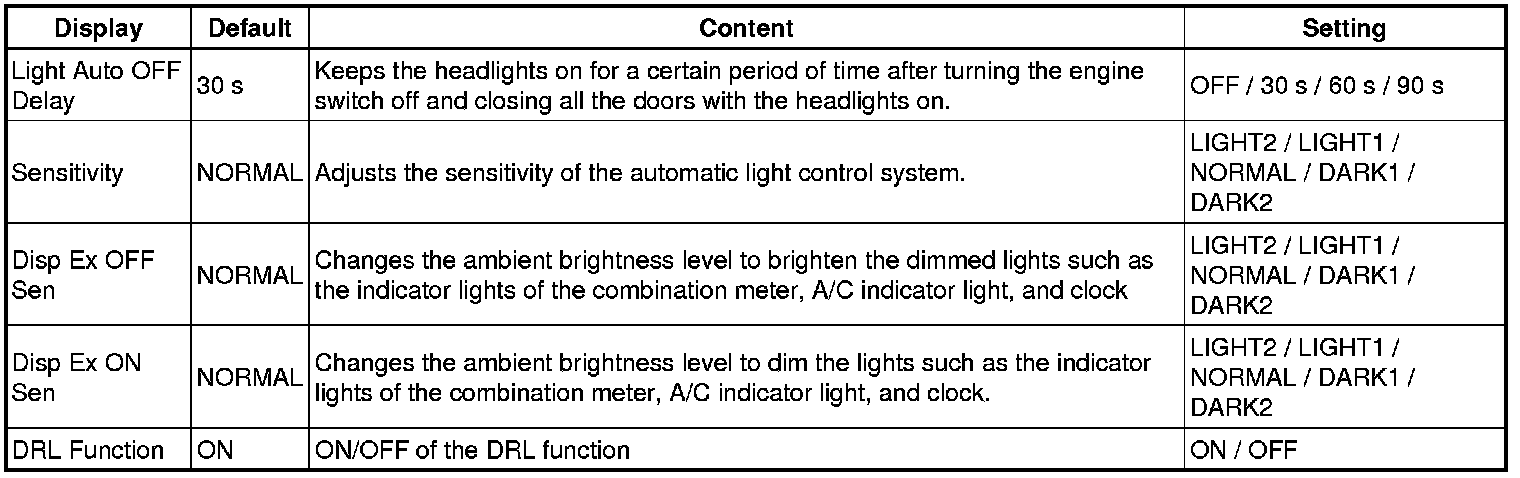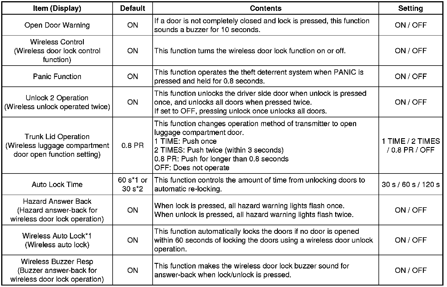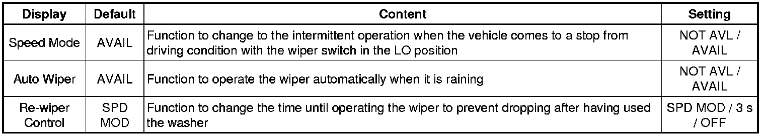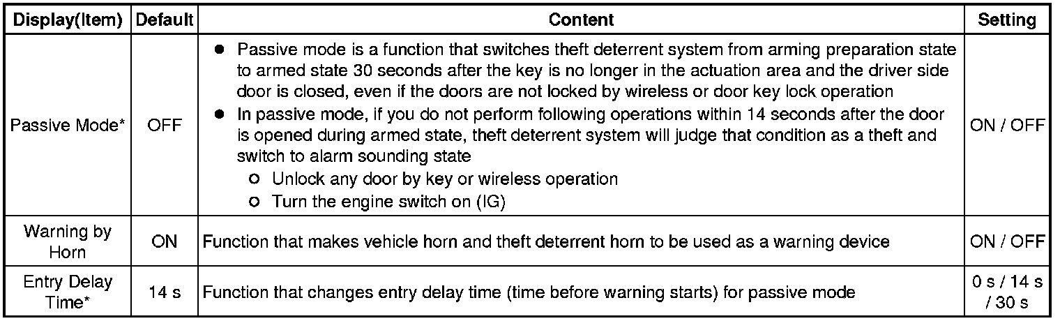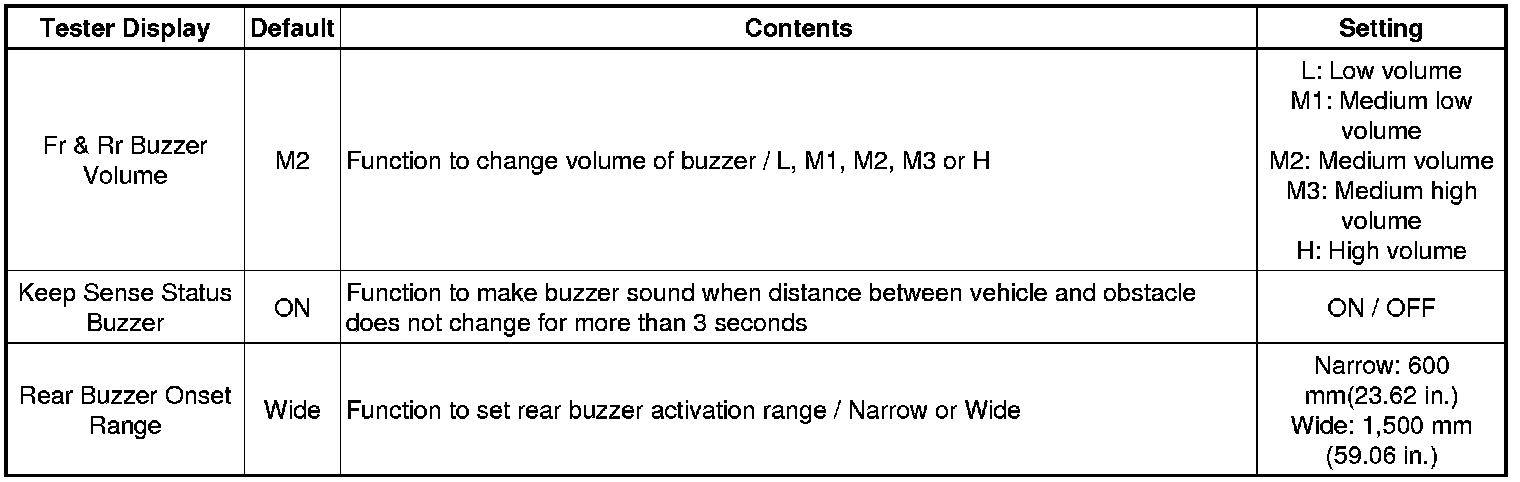 * When either the cable connected to the battery terminal or the combination meter assembly connector is disconnected, these buzzers are set on (enabled).