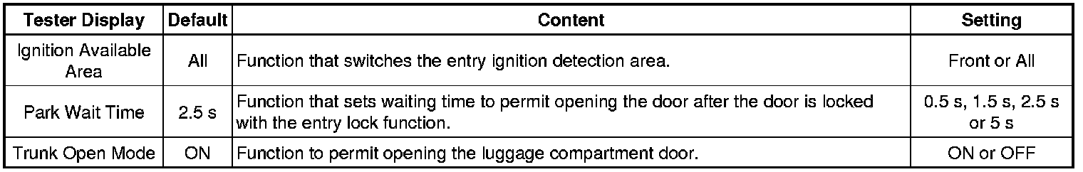 7. ENTRY UNLOCK MODE SWITCHING (SMART ACCESS SYSTEM WITH PUSH-BUTTON START (for Entry Function))