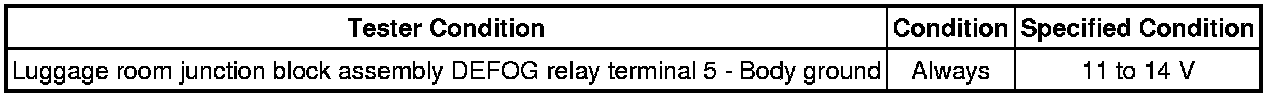 When the rear defogger switch built into the display and navigation module display is operated, a signal is sent from the display and navigation module display to the air conditioning amplifier assembly via AVC-LAN and BEAN communication. When the air conditioning amplifier assembly receives that signal, it turns the DEFOG relay on to operate the rear defogger.