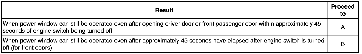* However, when approximately 45 seconds have elapsed, or the driver door or front passenger door is opened within approximately 45 seconds of the engine switch being turned off, the front power window regulator motor assemblies stops operating.