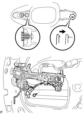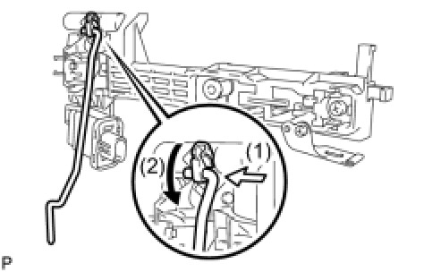 (a) Connect the front door lock remote control cable and front door inside locking cable to the front inside handle.