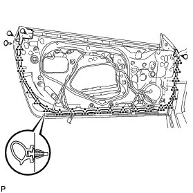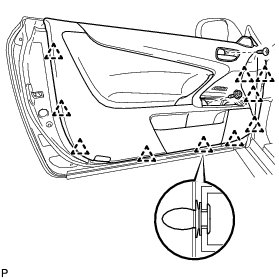 (c) Engage the 10 clips and install the front door trim board sub-assembly to the front door panel.