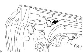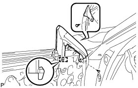 (b) Insert the rear end of the front door outside handle assembly into the front door outside handle frame then slide the front door outside handle assembly towards the front of the vehicle to install it.