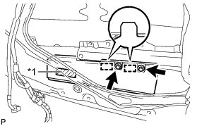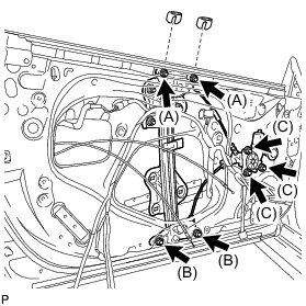 (c) Using a water pump pliers, engage the 2 claws (B) and install a new front door power window regulator base plate.