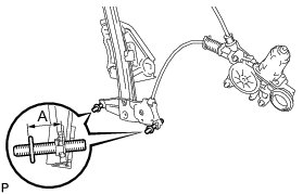 (a) Using a 4 mm hexagon wrench, adjust the stud bolts at the bottom of the front door window regulator assembly as shown in the illustration.